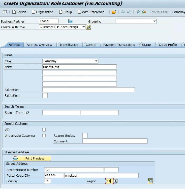 Create Customer Using T-Code
