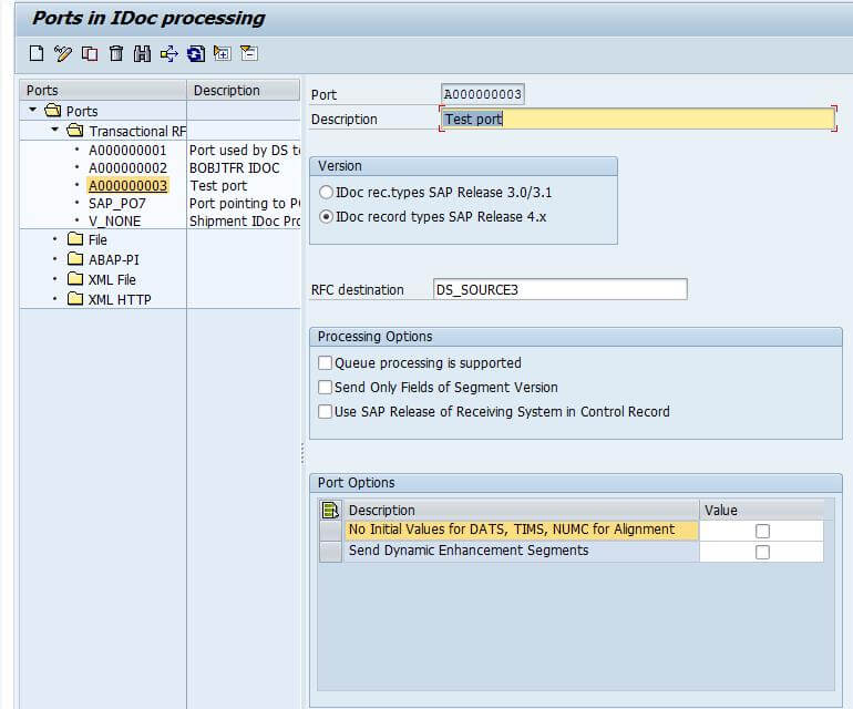 Go to Tcode - WE21 and create a new port (TRFC) by providing the RFC destination. To create the port, first click on Transactional RFC and then click on create button.