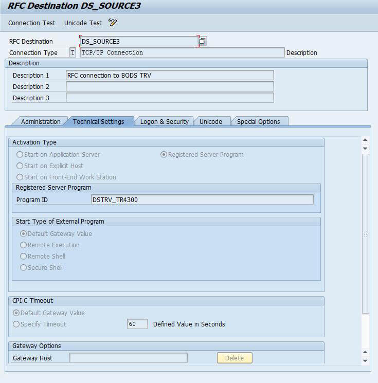 Now run the connection test to make sure the RFC connection is working fine